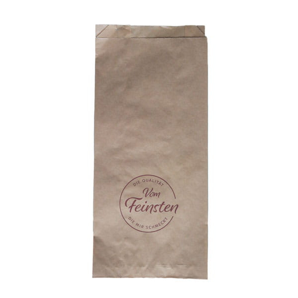 Bäckerbeutel „Vom Feinsten“, 16+6x36cm, Faltenbeutel 1.000 Stk., braun
