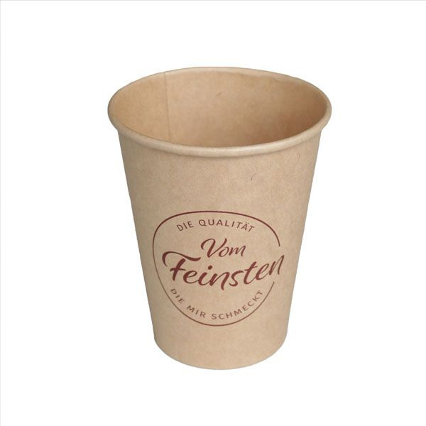 Stilvoller Kaffeebecher mit „Vom Feinsten“-Aufdruck. Hochwertiger Karton für heißen Kaffeegenuss to-go. Jetzt nachhaltig & schick genießen!