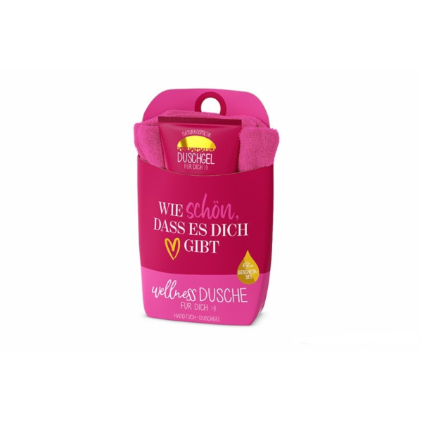 Geschenkset: Wellnessdusche „Wie schön, dass es dich gibt“, bestehend aus Handtuch + Duschgel
