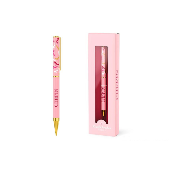 Edler „Chefin“-Kugelschreiber in Rosa mit Gold-Akzenten & schicker Geschenkbox. Das perfekte Accessoire für Powerfrauen & Büro-Heldinnen. Jetzt Stil schenken!