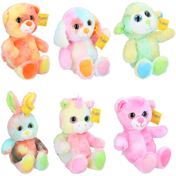 • Design: Alle Plüschtiere bestechen durch ihr auffälliges Multicolor-Design in sanften Pastell- und leuchtenden Regenbogenfarben.