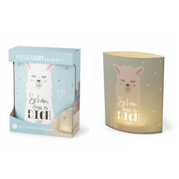 Poesielicht „Schön, dass es dich gibt – Lama“, VE: 4 Stk.