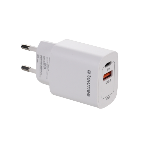 Tekmee Schnellladegerät, Dual-Port, Typ C/USB, 20 W, VE: 5 Sk.