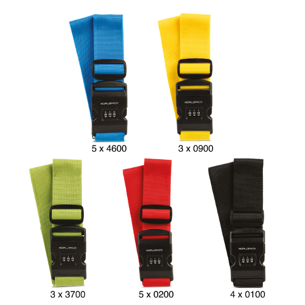 Koffergurt mit Zahlenschloss, Worldpack, 4-fach farbl. sortiert, VE: 20 Stk.