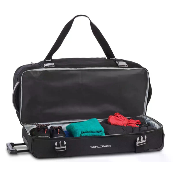 Diese vielseitige Rollentasche kombiniert das Packvolumen einer Reisetasche mit dem Komfort eines Trollers und ist ideal für längere Reisen oder Sportausrüstung geeignet.