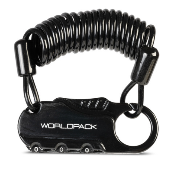 Flexibles Worldpack Kabelschloss mit praktischem Spiralkabel & Zahlencode. Sichern Sie Taschen & Equipment einfach und schlüssellos – ideal für jede Reise!